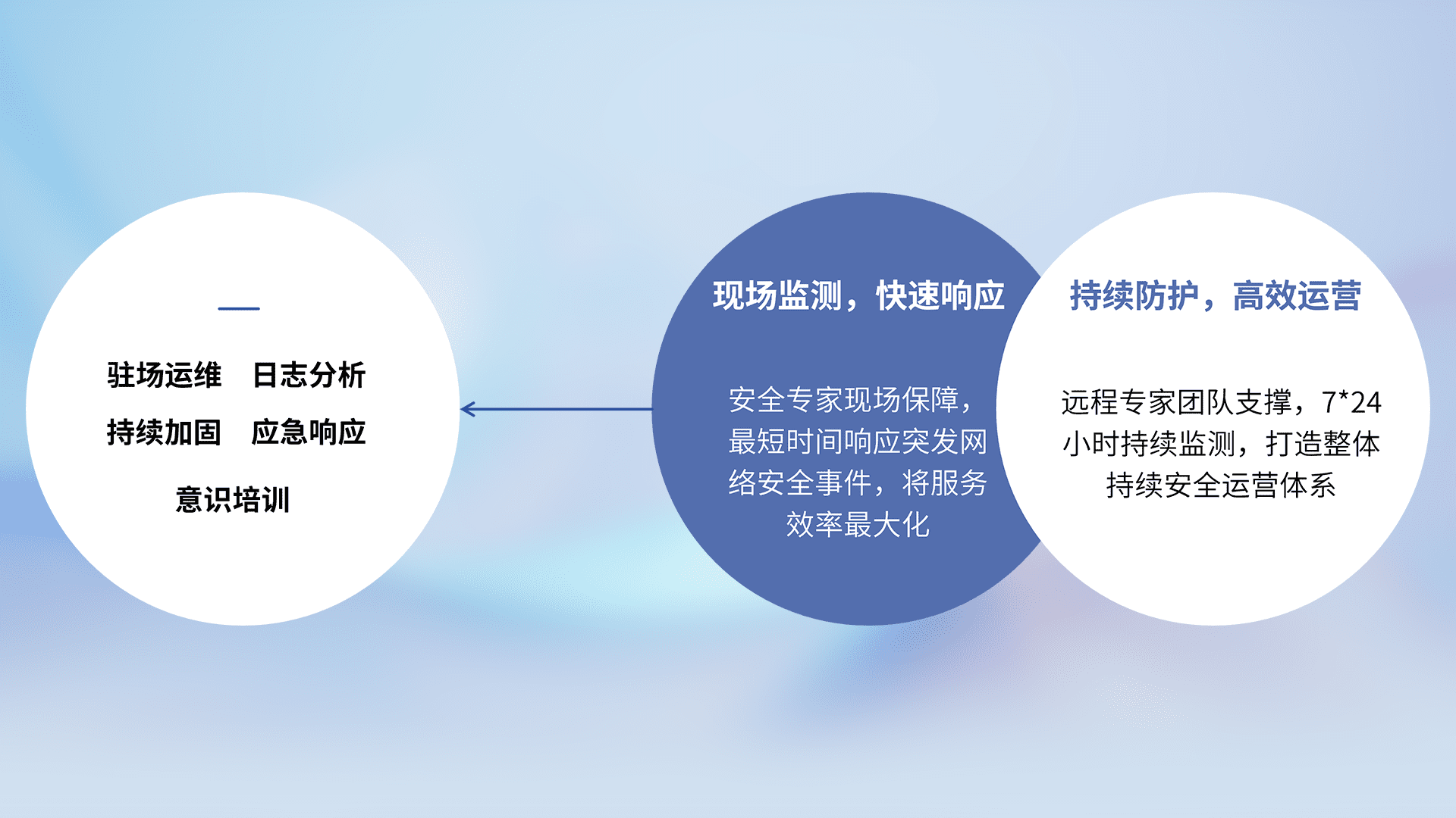 7X24小时持续监测安全事件,保持安全策略有效性,降低资产脆弱性风险,,,,精准拦截黑客攻击,,,,减少被黑客利用的机会,,第一时间遏制,,,,降低损失。。